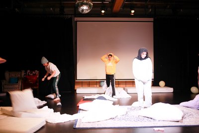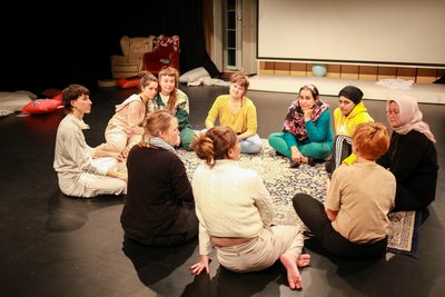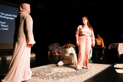 In einem Stück von ca. 50 Minuten zwischen persisch italienisch und Schweizer Deutsch, laden wir das Publikum ein zu unser ganz persönlichen Pyjamaparty. Wir spielen zwischen Kissen und Decken, Tüchern und Matratzen. Wir tragen Samt und wir glitzern. Aber unsere Rucksäcke sind schwer von den Geschichten, die wir tragen, denn wohin mit Fragen, Zweifel, Stille, wenn der Raum versperrt wird?