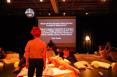 In Spazio per noi wird Einschluss zu Ausschluss und Ausschluss zu Einschluss. Das Publikum wird am Eingang streng kontrolliert. Nur wer beweisen kann, Ausländer:in zu sein, darf den Bühnenraum betreten. Alle anderen? Warten.