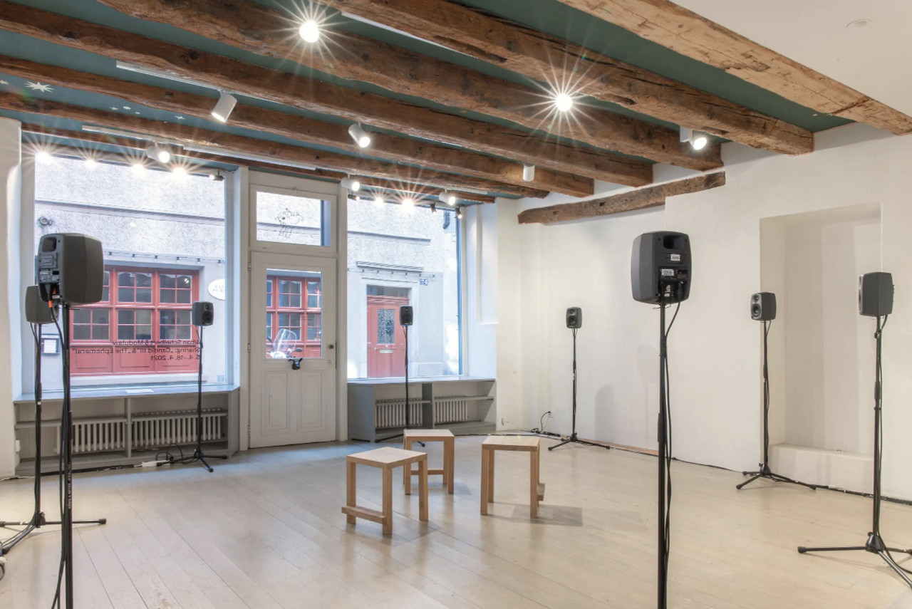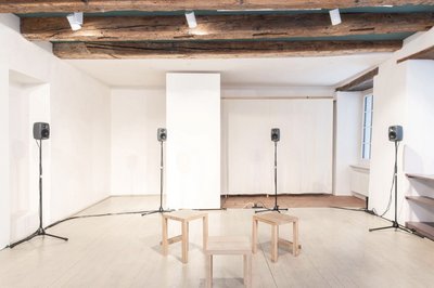 Während zwei Wochen wurde der Rindermarkt 23 durch ein 8 Kanal Lautsprecher-System mit eigenen akusmatischen Kompositionen in installativer Form von Alban Schelbert und Merlin Züllig bespielt.