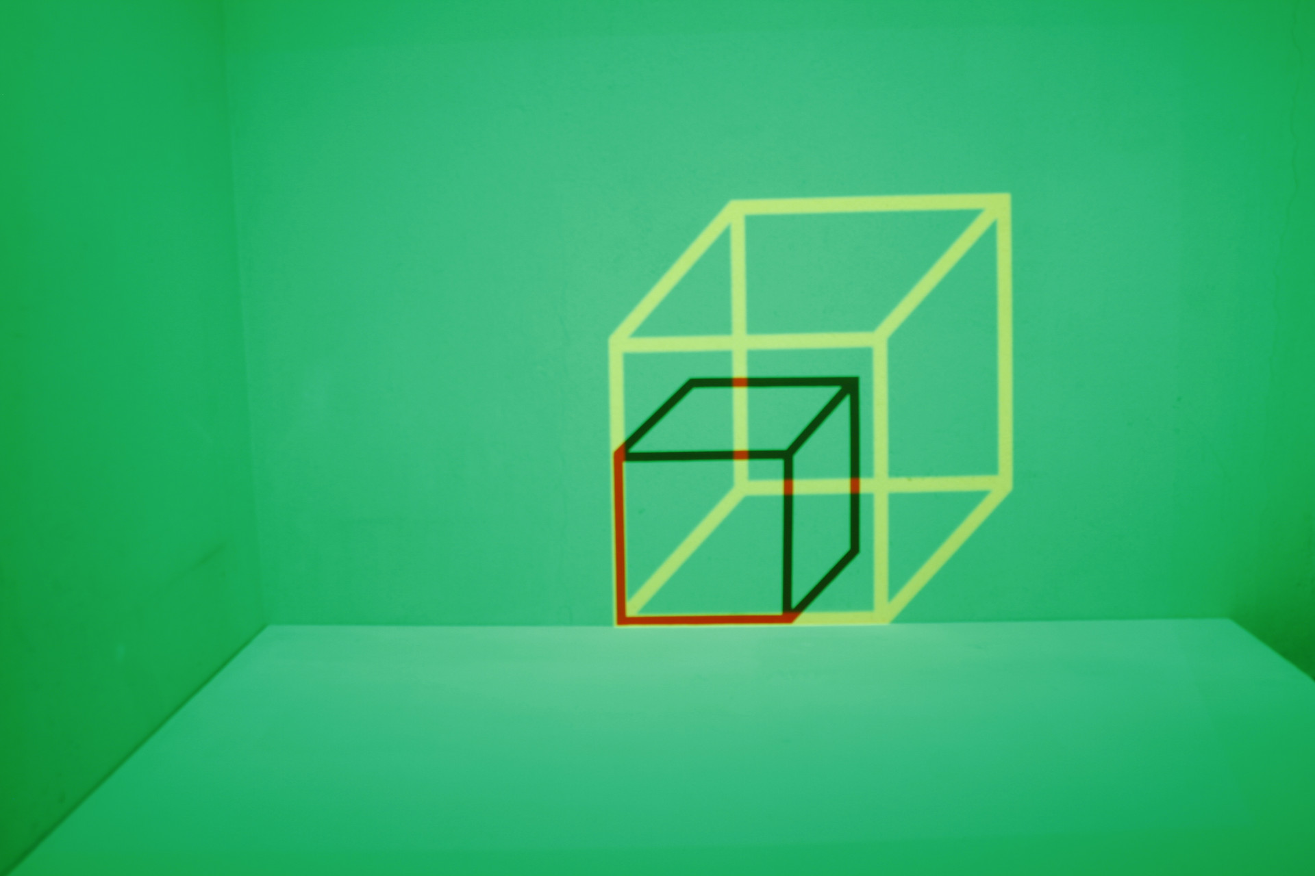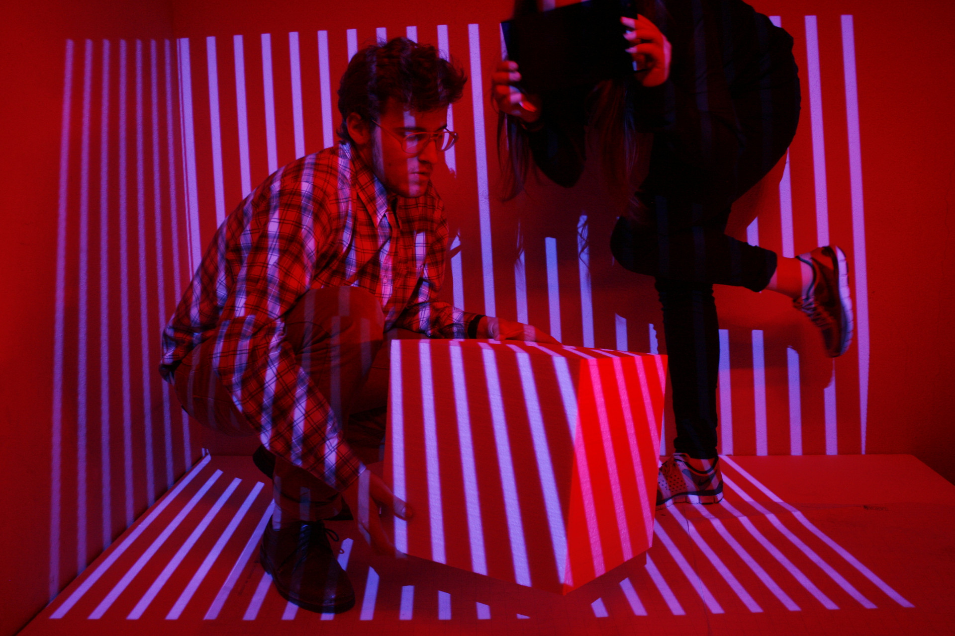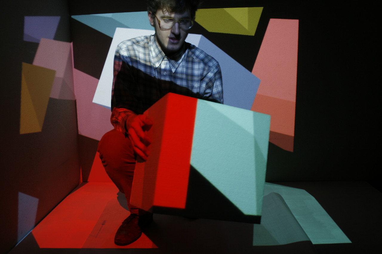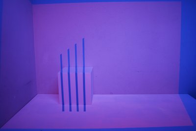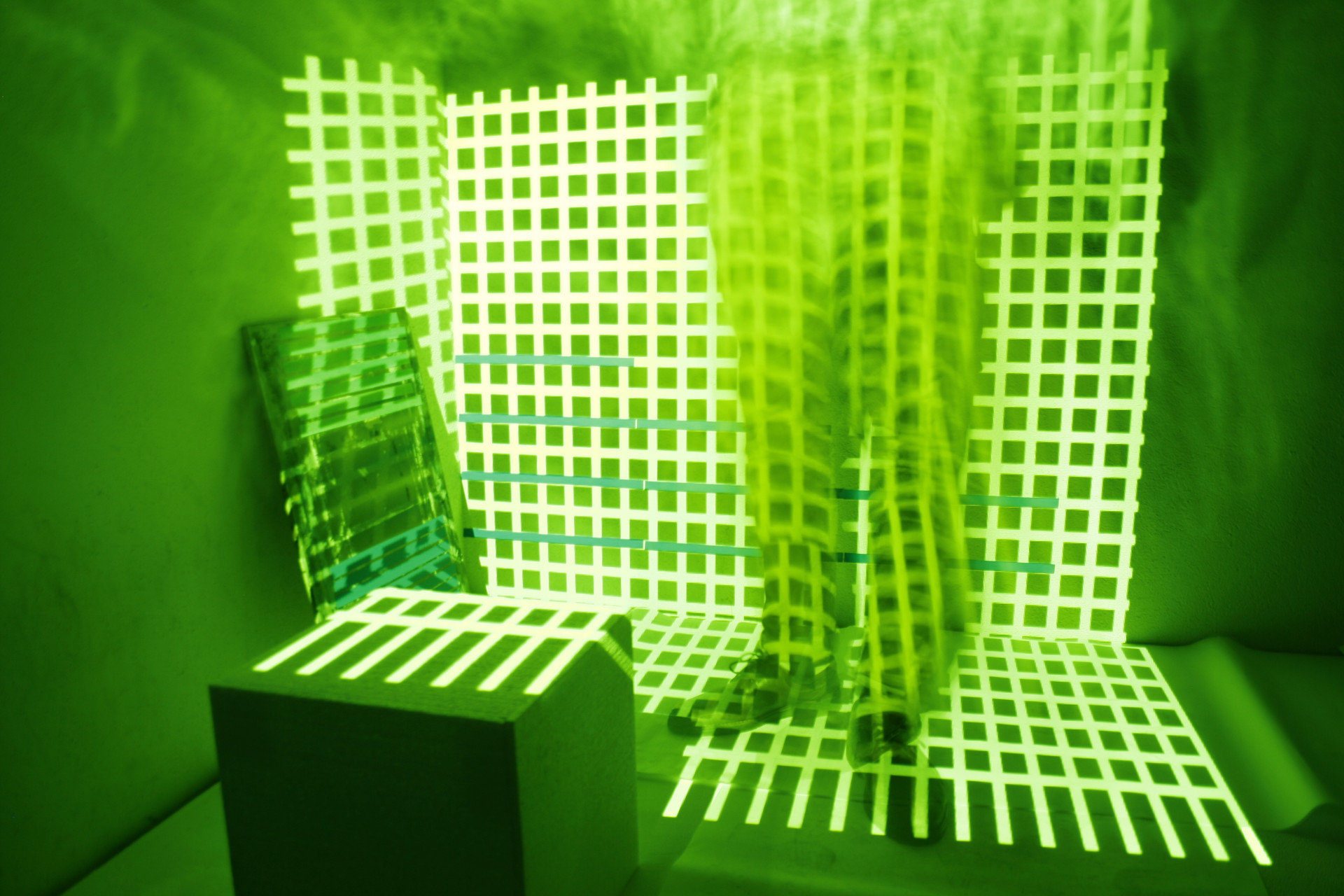 Farb, Licht, Raum Experimente mit Beamer, LED Licht, Klebeband, Styroporwürfel, Farbfilter.