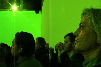 Variante der Inszenierung FarbTon als Wandprojektion mit drei Beamern und 12 Lautsprechern.