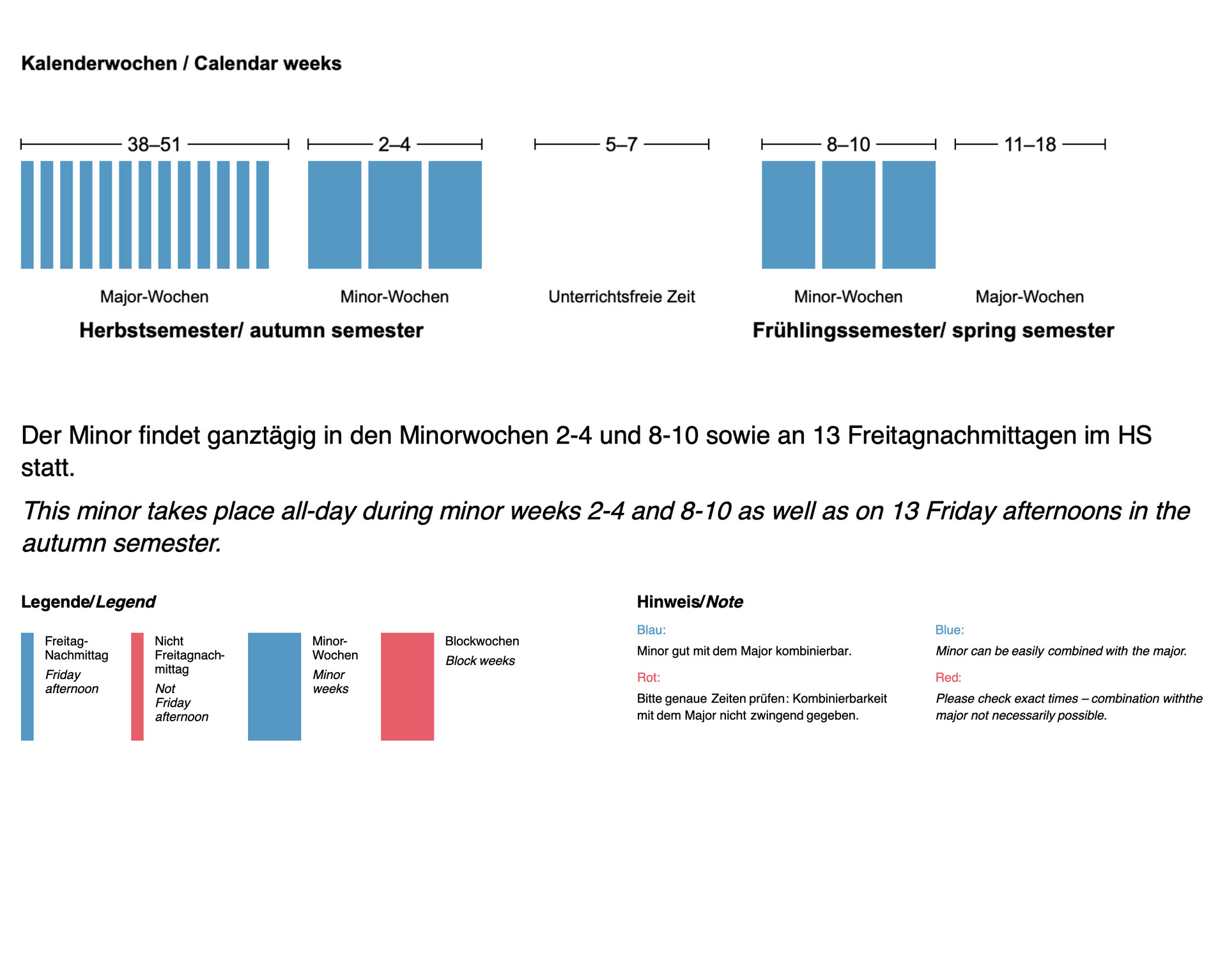 Mit dem Major wählen Studierende ihren Studienschwerpunkt. Dazu können sie einen oder zwei Minors wählen, mit denen die Kompetenzen aus dem Major vertieft oder disziplinenübergreifend erweitert werden. Die ZHdK bietet mit dieser Wahlvielfalt ein europaweit einzigartiges Angebot, welches eine ganz individuelle Entwicklung und Schärfung des eigenen Studienprofils ermöglicht.