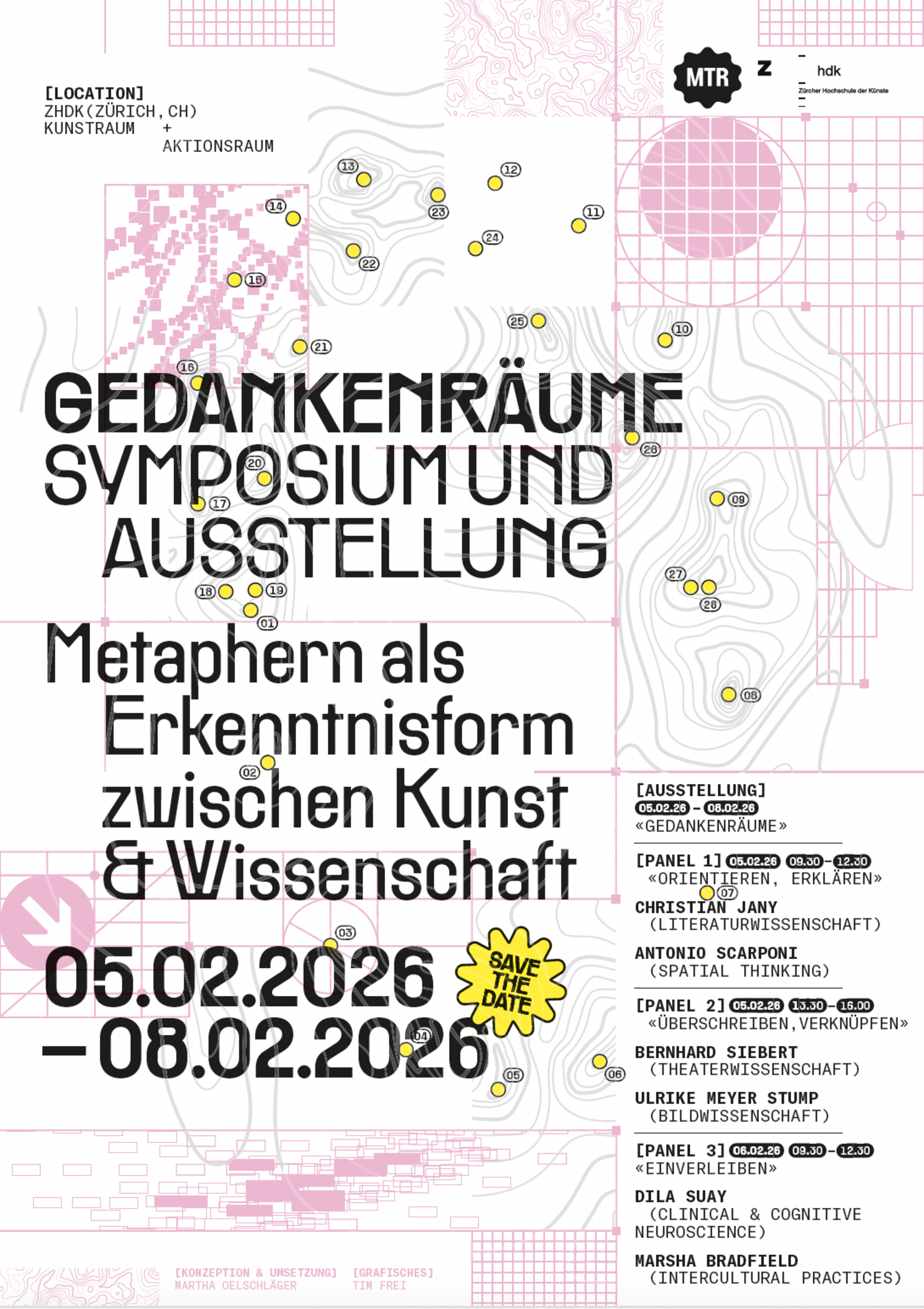 Die Idee zu «Gedankenräume» entstand aus meiner eigenen künstlerischen und theoretischen Arbeit heraus. Ob beim szenografischen Gestalten für Film/Performance oder beim Zusammentragen von Textstellen und Referenzen für ein wissenschaftliches Essay interessieren mich dialogische Formate, insbesondere das Arbeiten im Team. Im Laufe meines Studiums hat mich fasziniert, wie sehr unterschiedliche Disziplinen – von Theater- und Kulturwissenschaft über Neurowissenschaften bis hin zu Szenografie und bildender Kunst – mit teilweise ähnlichen räumlichen Denkfiguren arbeiten, diese aber selten miteinander ins Gespräch bringen. Aus dem Wunsch, genau diese Parallelen und Unterschiede sichtbar zu machen und einen Raum zu schaffen, in dem sich wissenschaftliche und künstlerische Perspektiven gegenseitig herausfordern, inspirieren und erweitern, ist das Symposium entstanden.