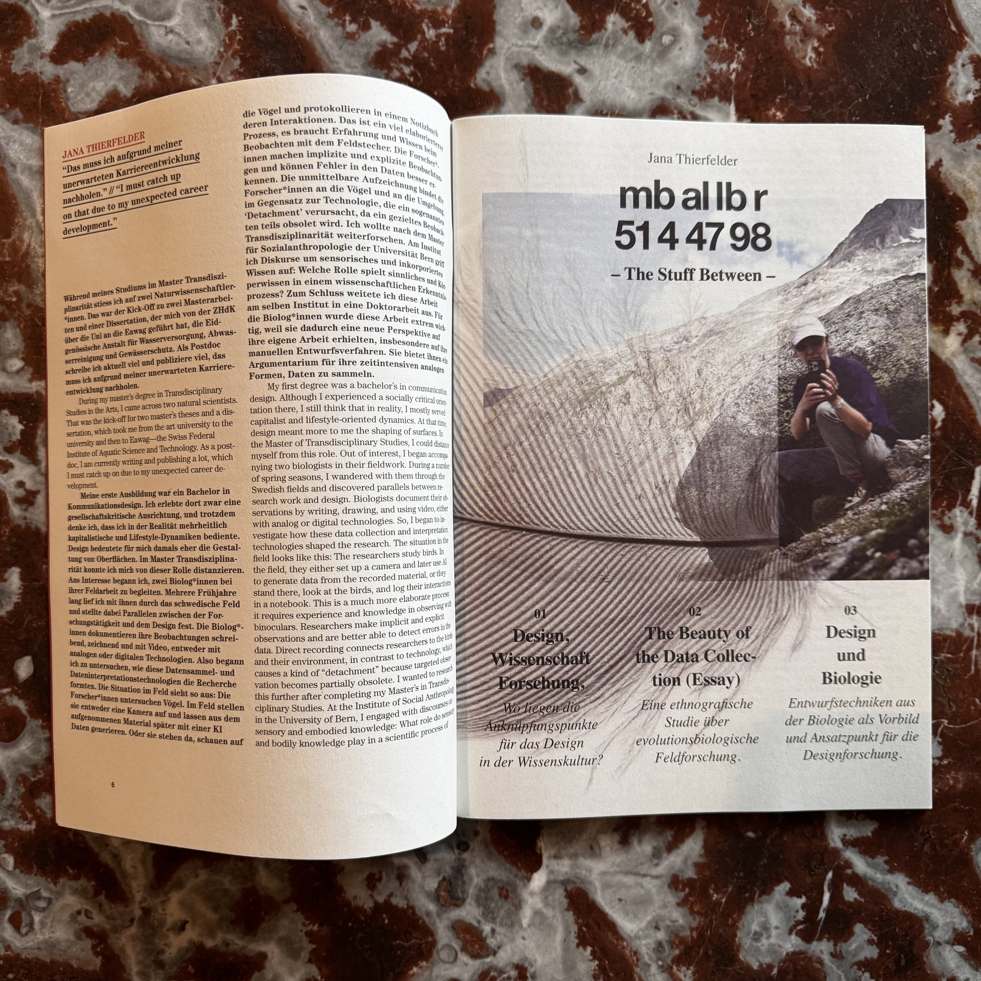 Im Dezember erscheint zudem Thierfelders Dissertation «The Marking of Scientific Knowledge. Sensory and Bodily Practices in Field Biology». Die künstlerisch-anthropologische Untersuchung widmet sich Praktiken der Wissensproduktion und deren Wandel durch den Einsatz von KI. Das Buch wird mit einem Publikationsgrant des Schweizerischen Nationalfonds (SNSF) unterstützt.