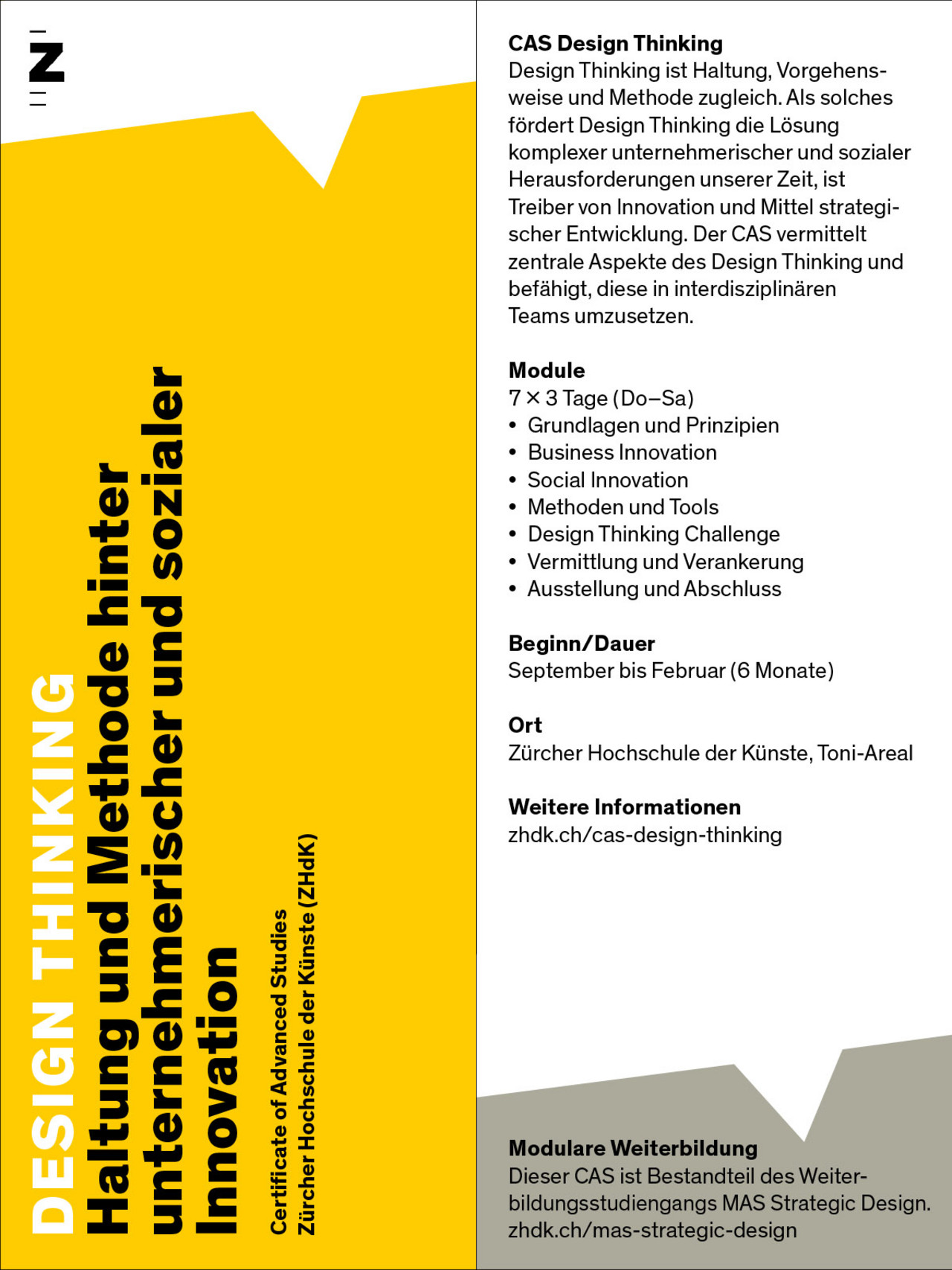 Aktueller Flyer des CAS Design Thinking