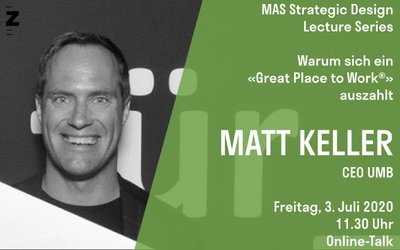 An der dritten Strategic Design Lecture Series war Matt Keller, CEO und Mehrheitsaktionär bei UMB zu Gast und erzählte, was Coaching und Zeit für das wachstumsstärkste Unternehmen im Schweizer ICT-Markt bedeutet, welches 2020 zum vierten Mal in Folge als bester Arbeitgeber Great Place to Work® gekürt wurde.