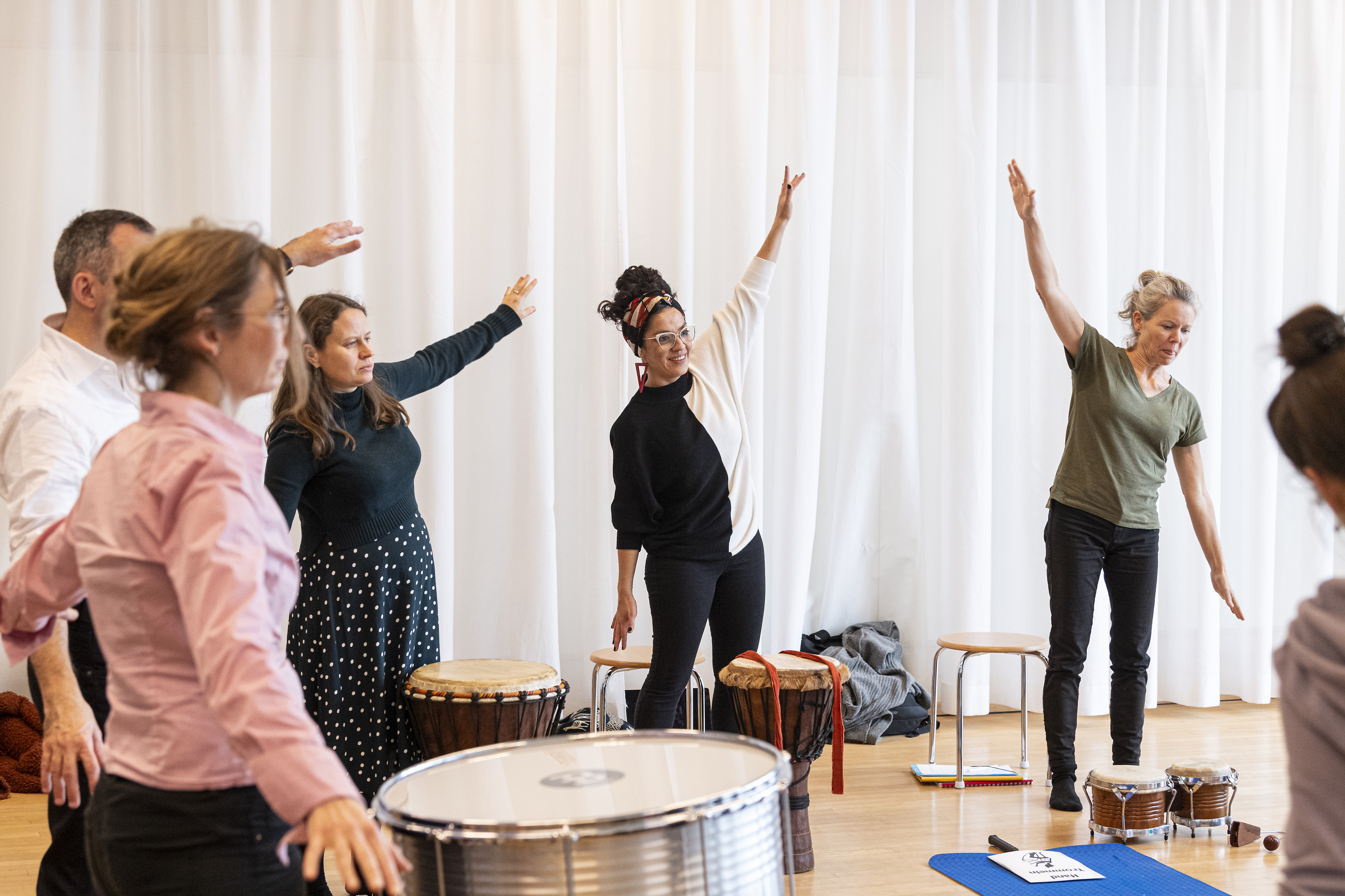 In dieser Weiterbildung entwickeln Sie eigene Fertigkeit im Spiel auf verschiedensten Perkussionsinstrumenten und setzen sich intensiv mit der Umsetzung in Ihrem Arbeitsfeld auseinander. Sie leiten Spiel-Stücke, Gestaltungs-Prozesse, Klassen-Bands und Impro-Spiele an, führen ein, bauen auf, vereinfachen, steigern, variieren, vertiefen und begeistern. Die angewendeten Rhythmus-Spiele sind eine Energie-Tankstelle im Gruppenmusizieren. Das «Phänomen-Rhythmus» bringt Kommunikation, Konzentration, Entspannung, Groove, Koordination, Flow und weckt Energie.