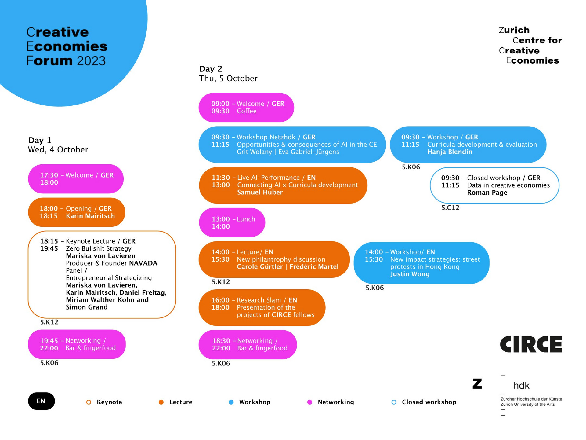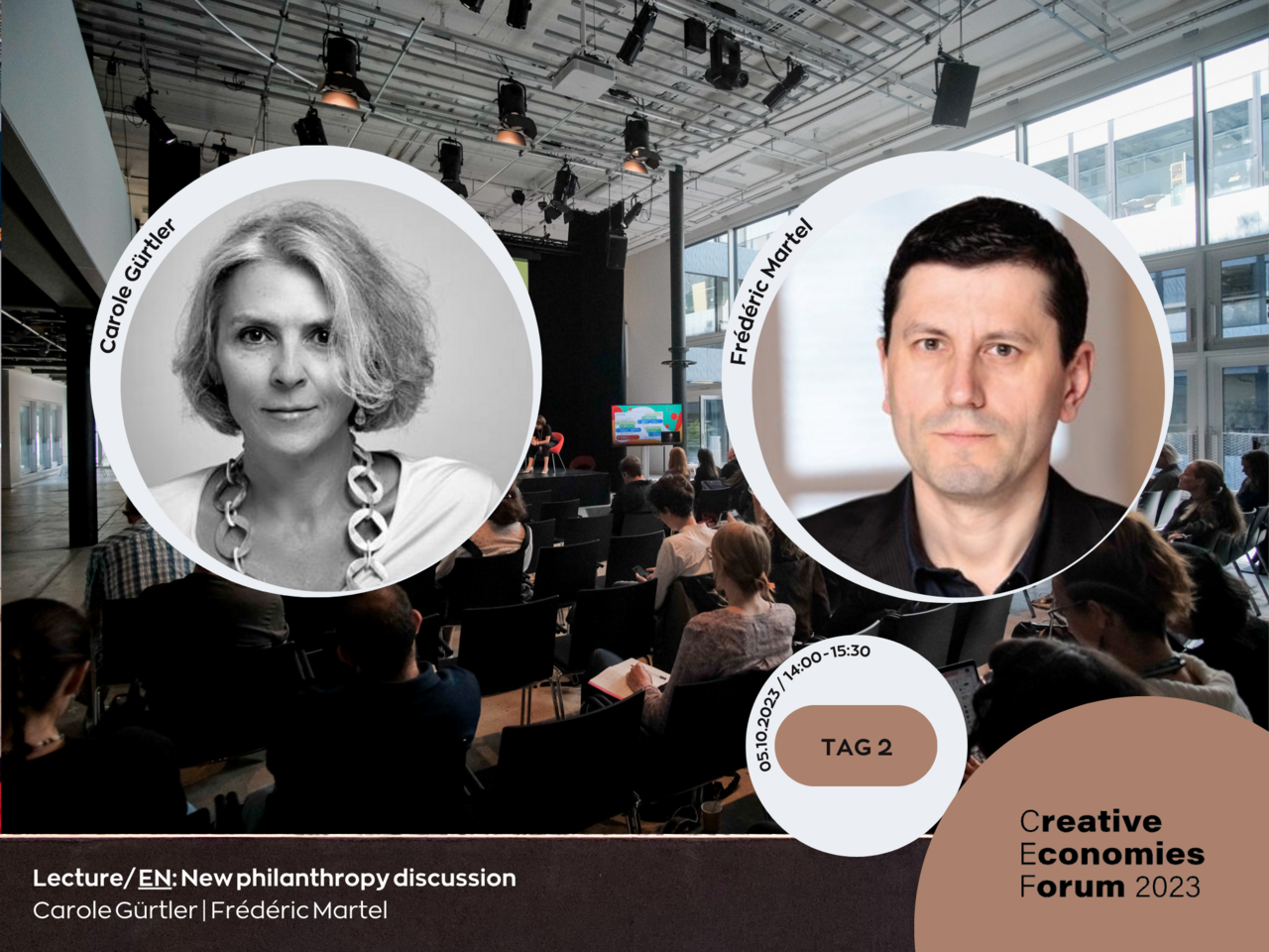 Anschliessend wird Simon Grand ein Panel moderieren und Miriam Walther (PUBLIX, Gessnerallee Zürich, Labor mit Utopieverdacht, artFAQ) und Daniel Freitag (Co-Founder Freitag) sowie Mariska van Lavieren und Karin Mairitsch, der Rektorin der ZHdK, die Frage stellen: "Wie können wir die Zukunft in der Gegenwart gestalten?".